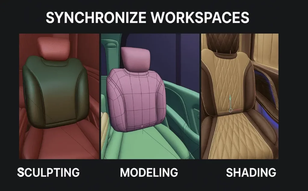 Plus besoin de replacer la caméra ou de refaire votre cadrage à chaque fois que vous passez du mode “Modeling” à “Shading” ou “Sculpting”. Tout reste comme avant : l’angle, le zoom, la position…